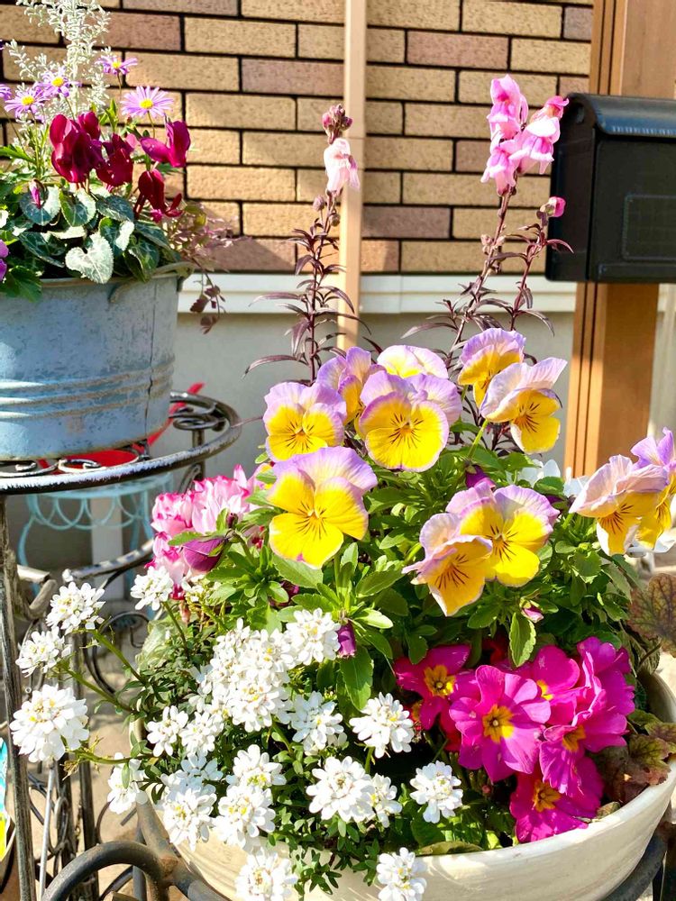 昨日のキンギョソウ ブロンズドラゴンの入った寄せ植えです🌸🌼🌿