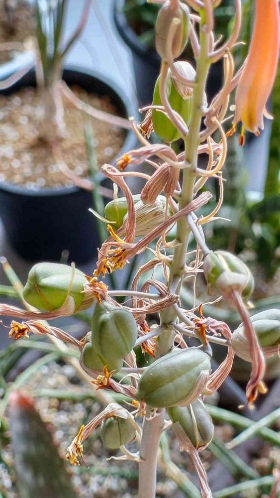 アロエはこれがあるから厄介。これとは自家受粉。裏を返せば生命力が強くギリギリ生きていける厳しい環境下でも子孫を残す植物である。