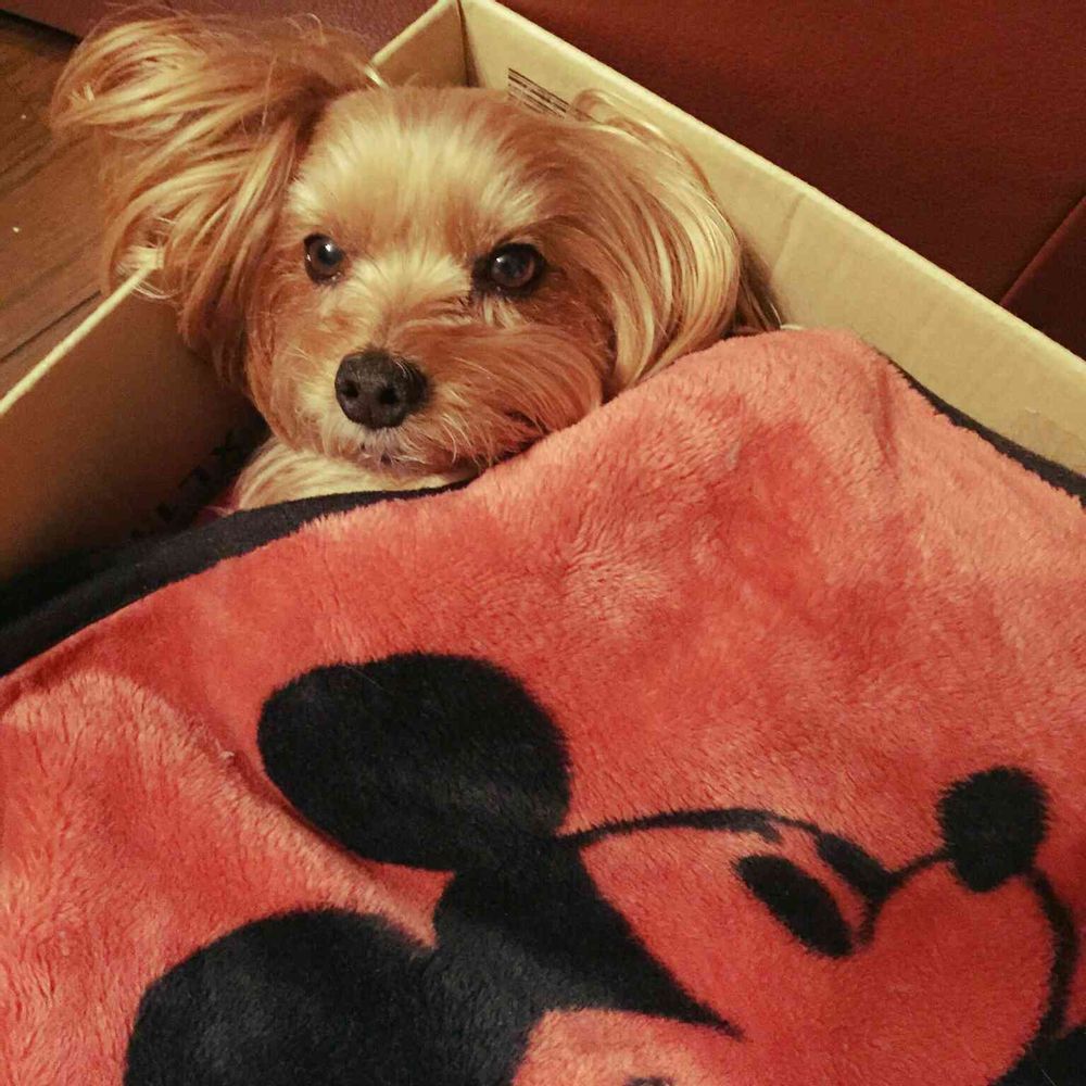 小さな場所が好きみたいで、お昼寝したりしてますよ😴ミッキーのブランケットでぬくぬくです✨