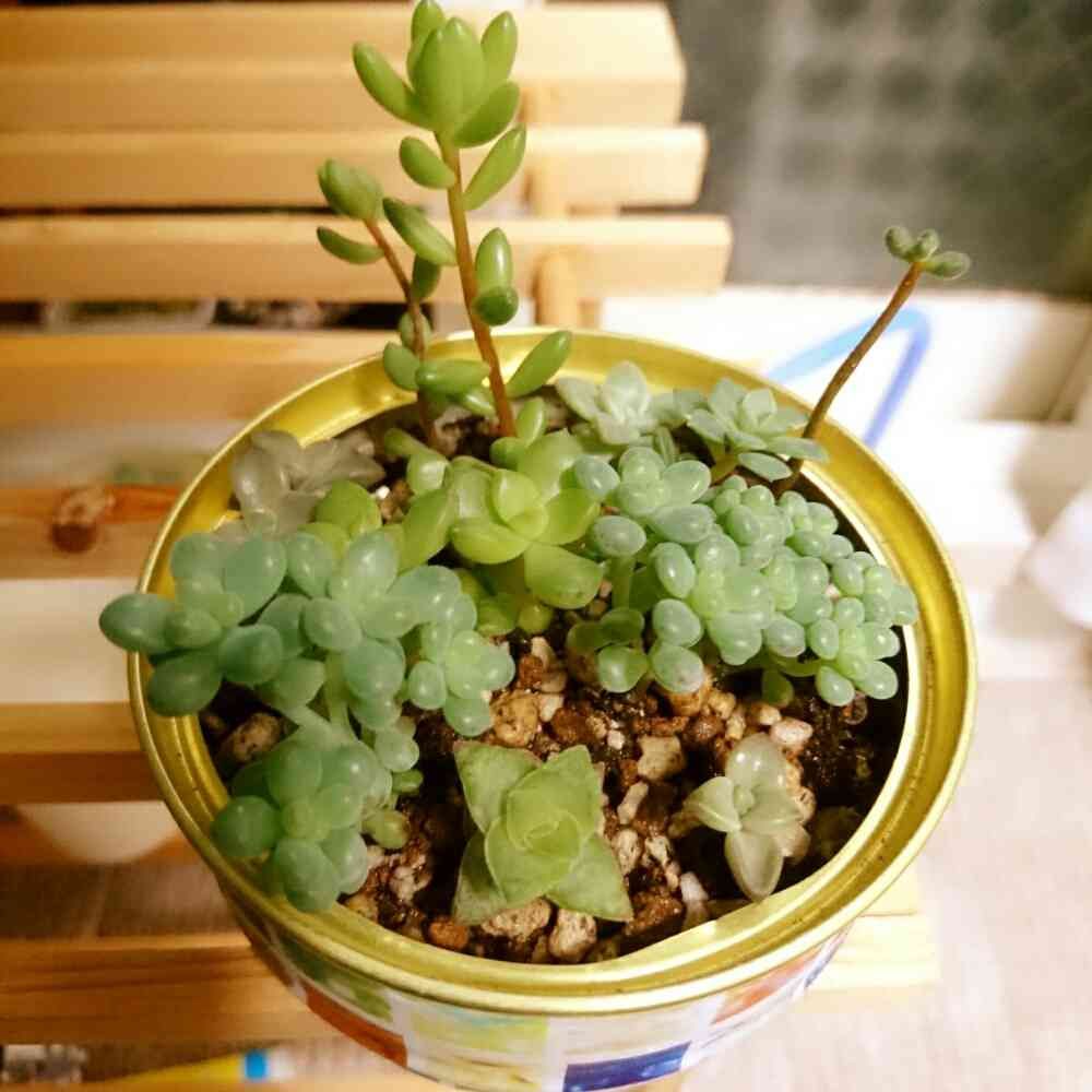 ツナ缶にポイポイしといた葉挿しや挿し芽達が可愛い感じになってました♡