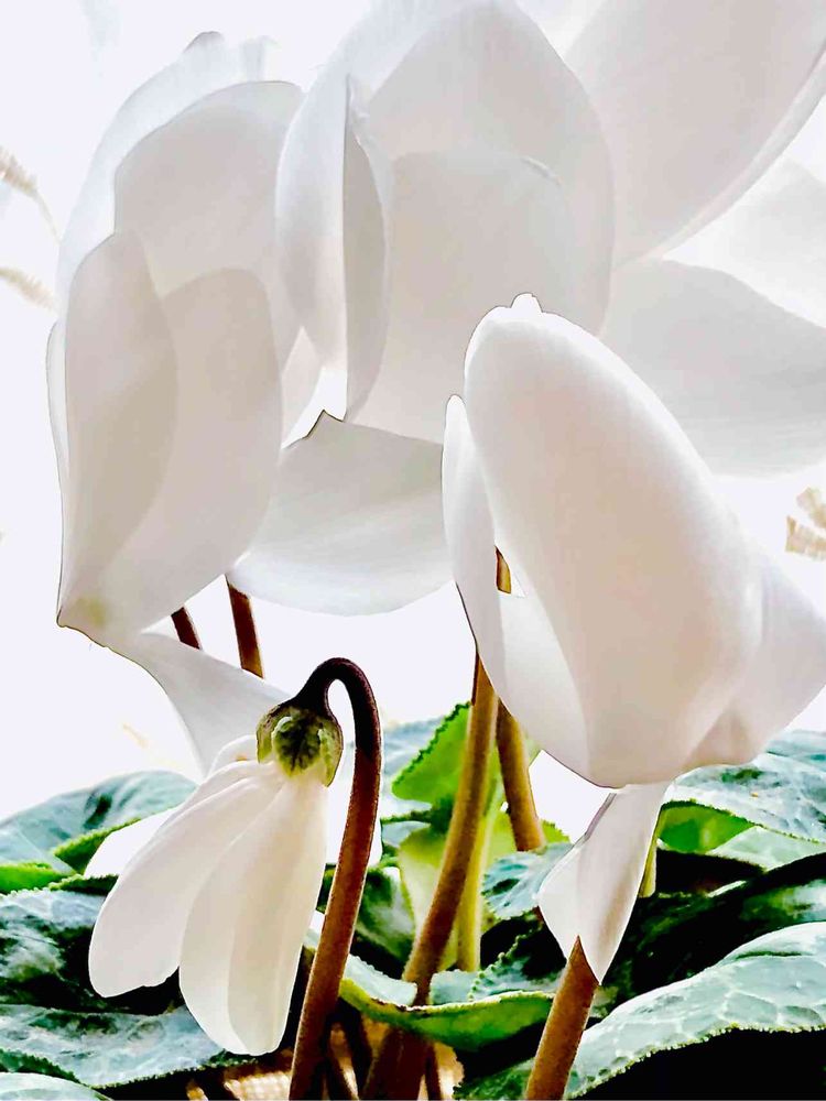 日当たりの良い出窓に置いてある純白シクラメンさん✨最後の蕾?が開き始めました✨😉沢山の癒しをありがとう❣️