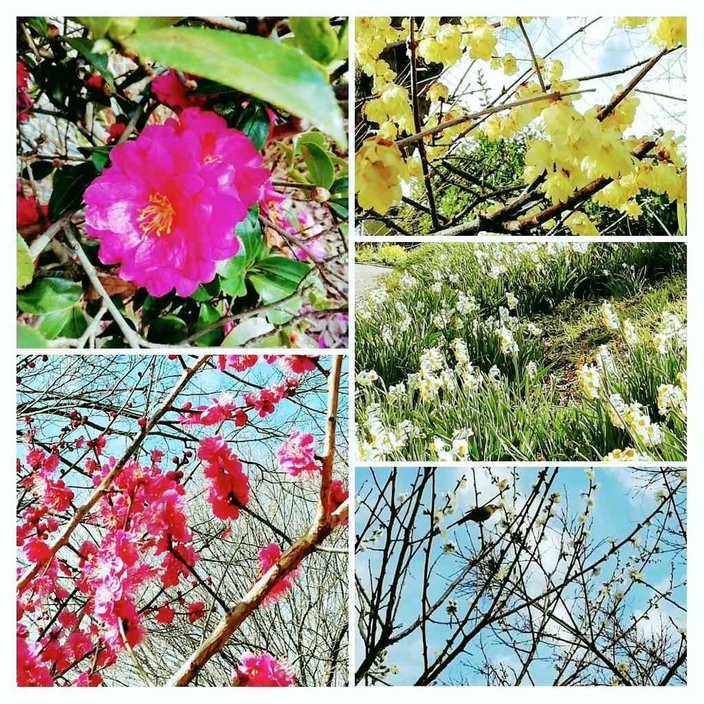 ↖️山茶花きれい!↙️紅梅も満開!↗️ロウバイも