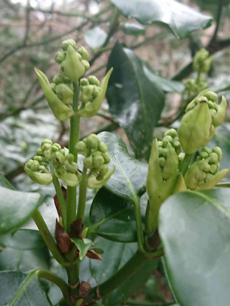 少し前まで、真っ赤な実をつけていたのに、もう 新しい年の準備が始まっています。🥀アオキの蕾