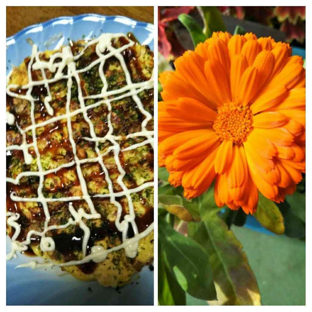 カレンデュラさんのお花を見ていたら、丸いお好み焼きのpicがありましたので……笑笑