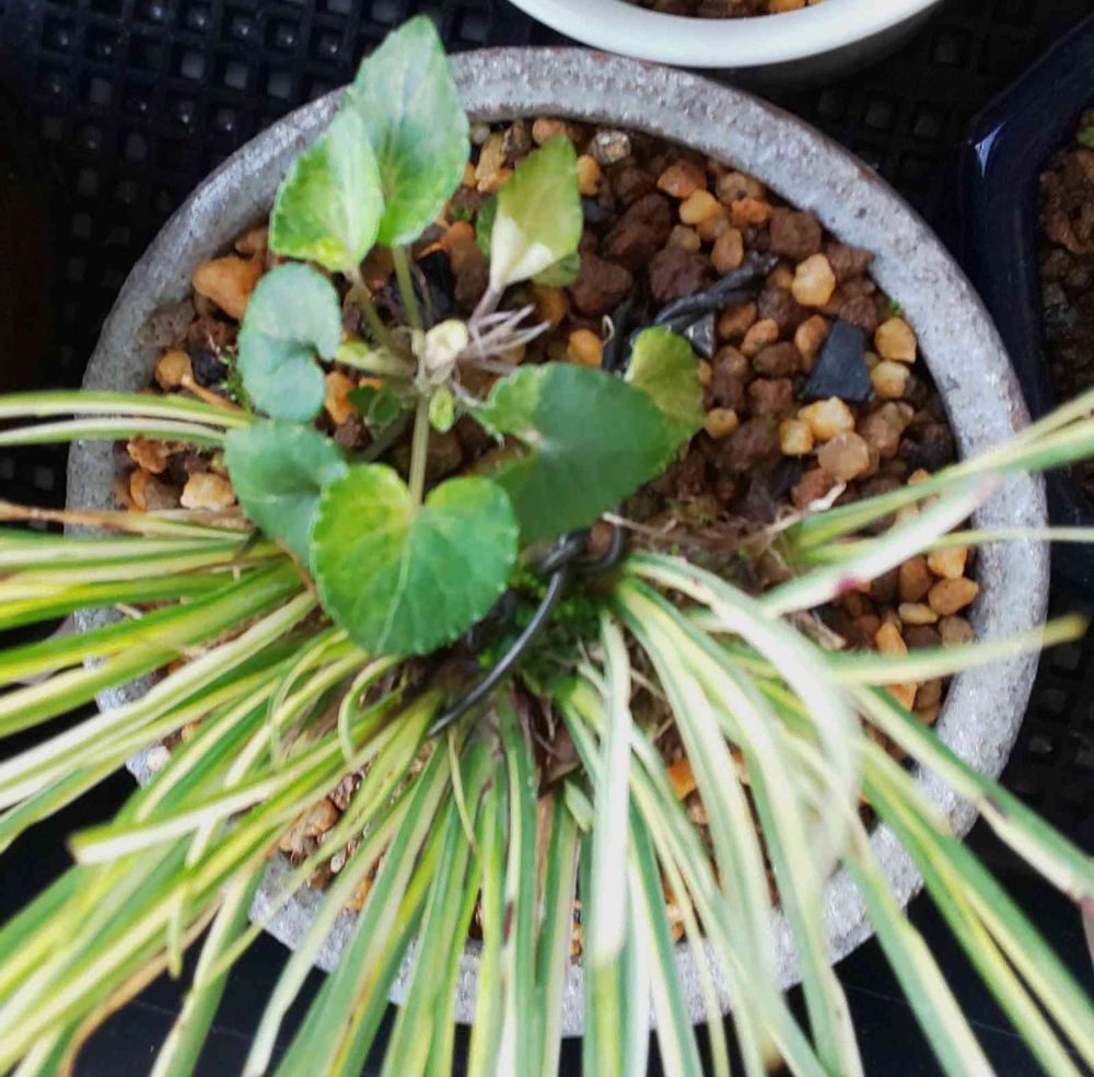 昨年秋に購入の斑入りセキショウのポットに入っていたスミレちゃん。