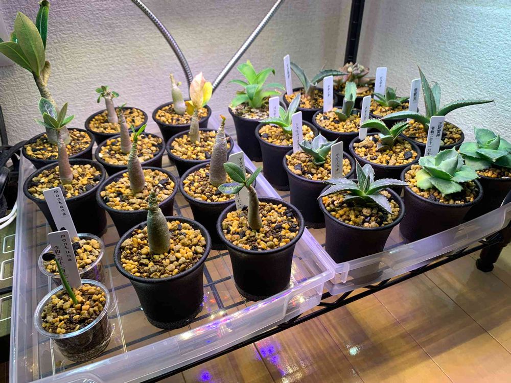 夏型塊根のお目覚め記事がだいぶ上がってきてますね。我が家も無加温で19度ありました。もう少しで一年を迎えるアラビカムたちを植え替えしました。根は、断水によりカラカラ。針金のような根と主根をカット。まずは根を目覚めさせたいので、ハイポネックスハイグレード活性剤200倍希釈で腰水管理。まだまだ寒いので腐りは心配していないものの、送風機は12時間回しています。お目覚めが楽しみです。