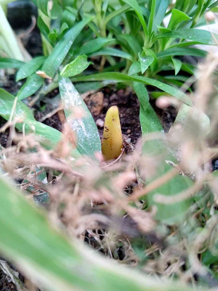 日陰に置いてすっかり忘れていたため芽が黄色い。本日より日向に移動。