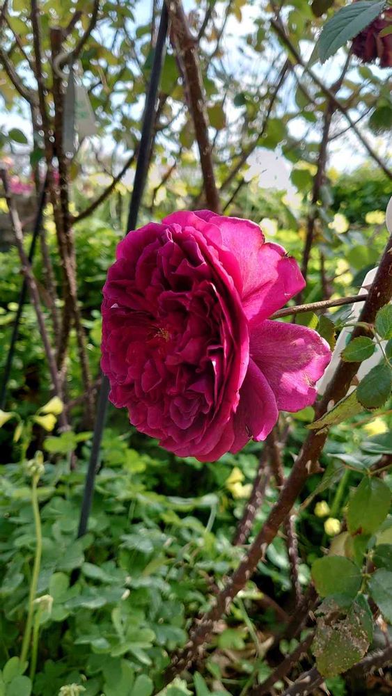 ディープレッド、深いカップ咲きで強いダマスクの香りがあります。晩秋以降の花は黒みが混し非常に美しく、切り花でも流通しています💐
