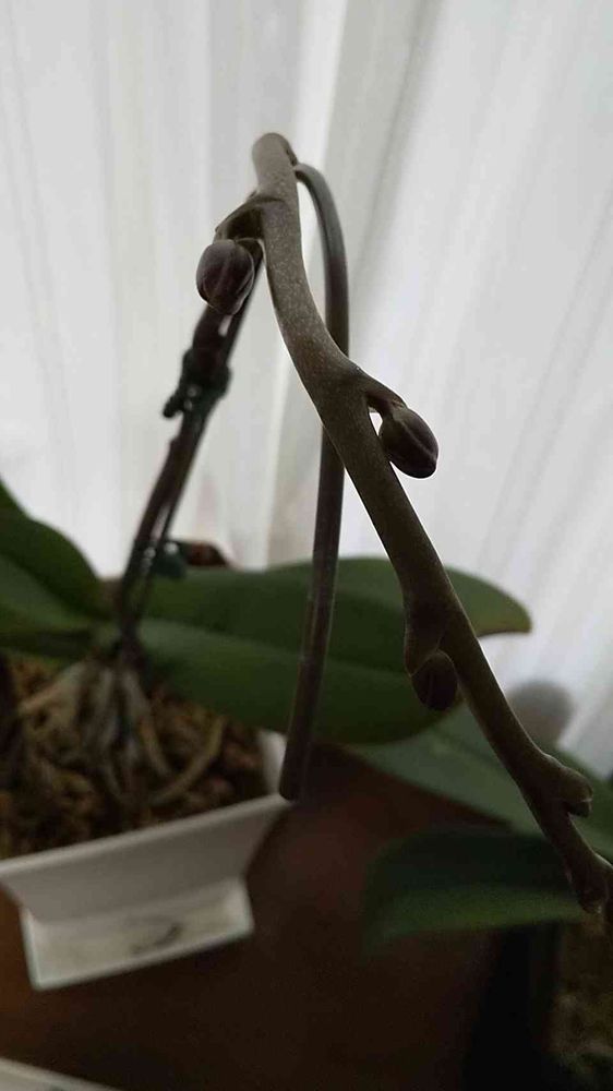 胡蝶蘭の落蕾は、たぶん、育てている環境の温度、湿度に関係あるんだよ。凝っている方は、蘭専用の温室を作ったりして、管理してるはず😉