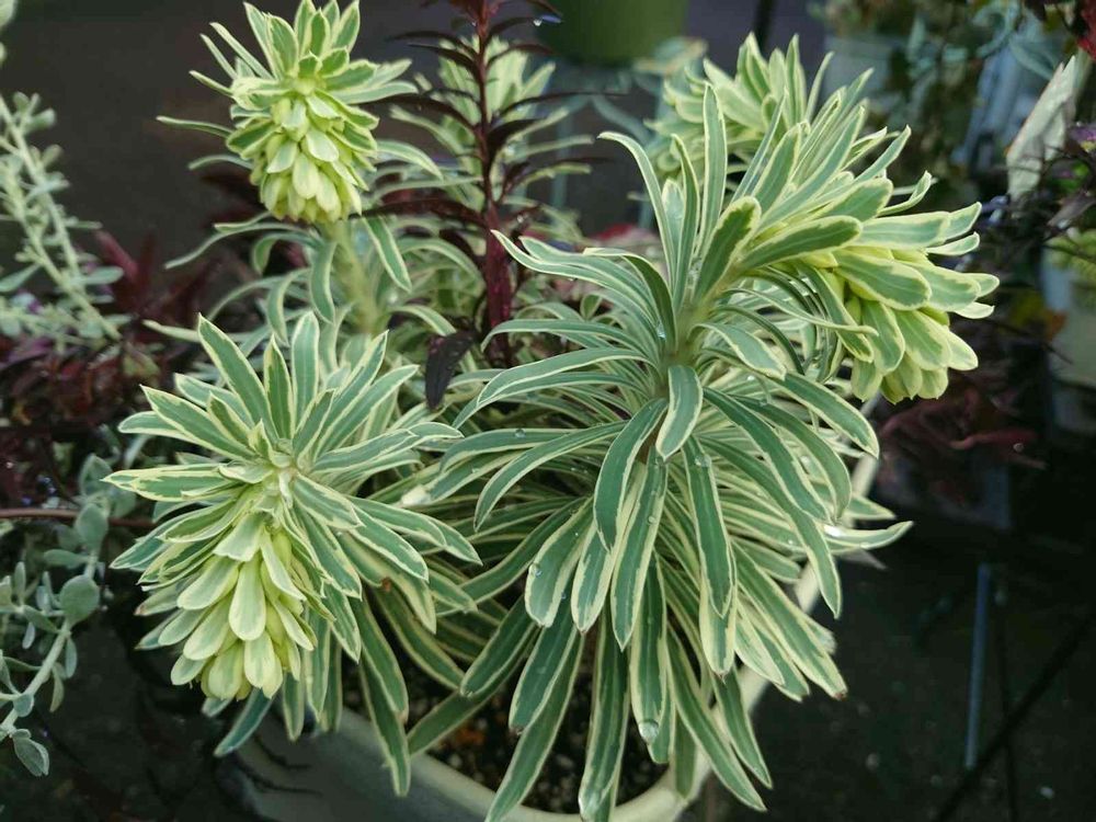 ☔雨上がり☀春の陽気の今日、ユーフォルビアの形が変わっていたのに気付く。