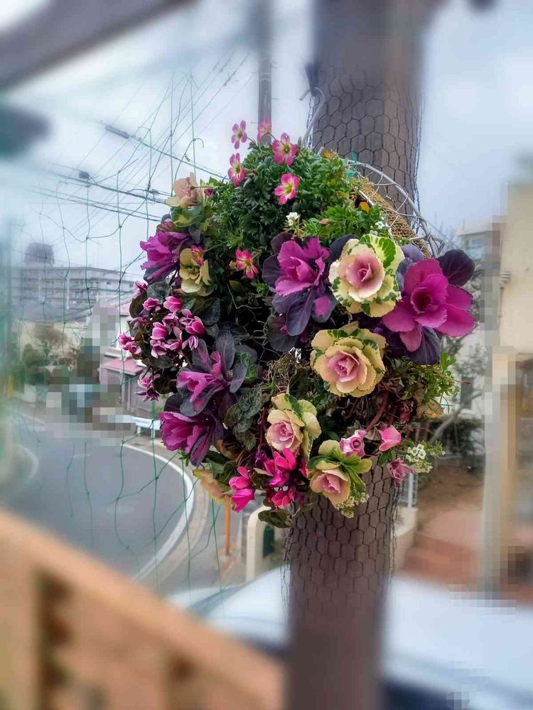 年末から飾っている葉牡丹とシクラメンのリース