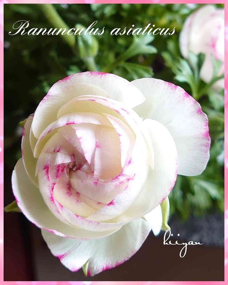ピンクのふちどりのあるラナンキュラスかわいい色ですね😊