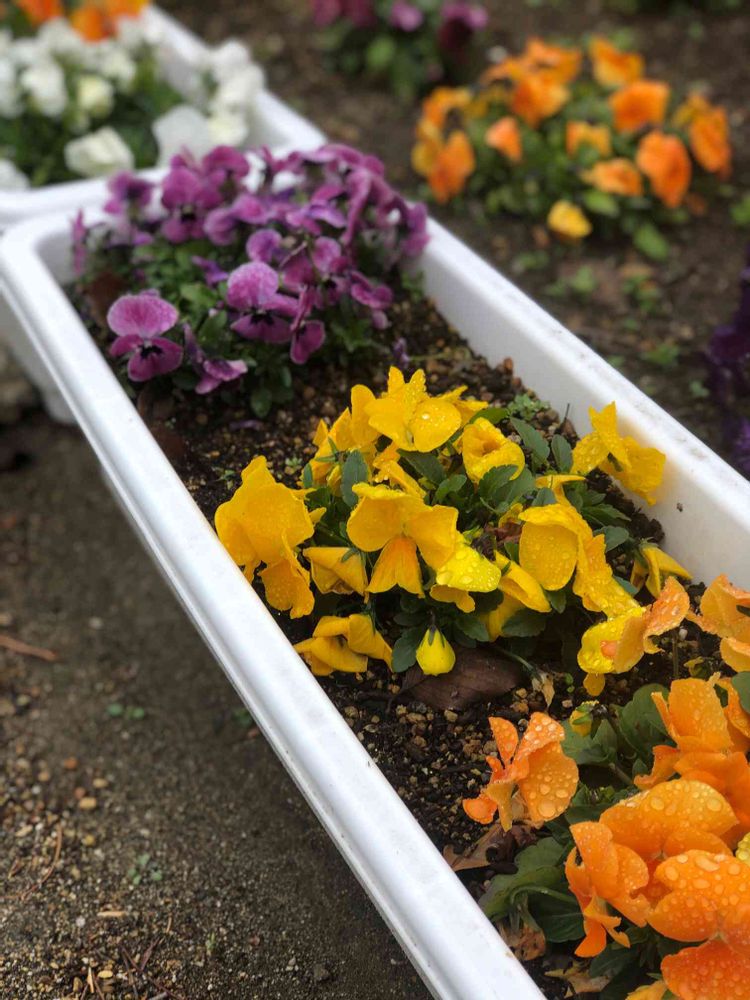 パンジーが土植えと