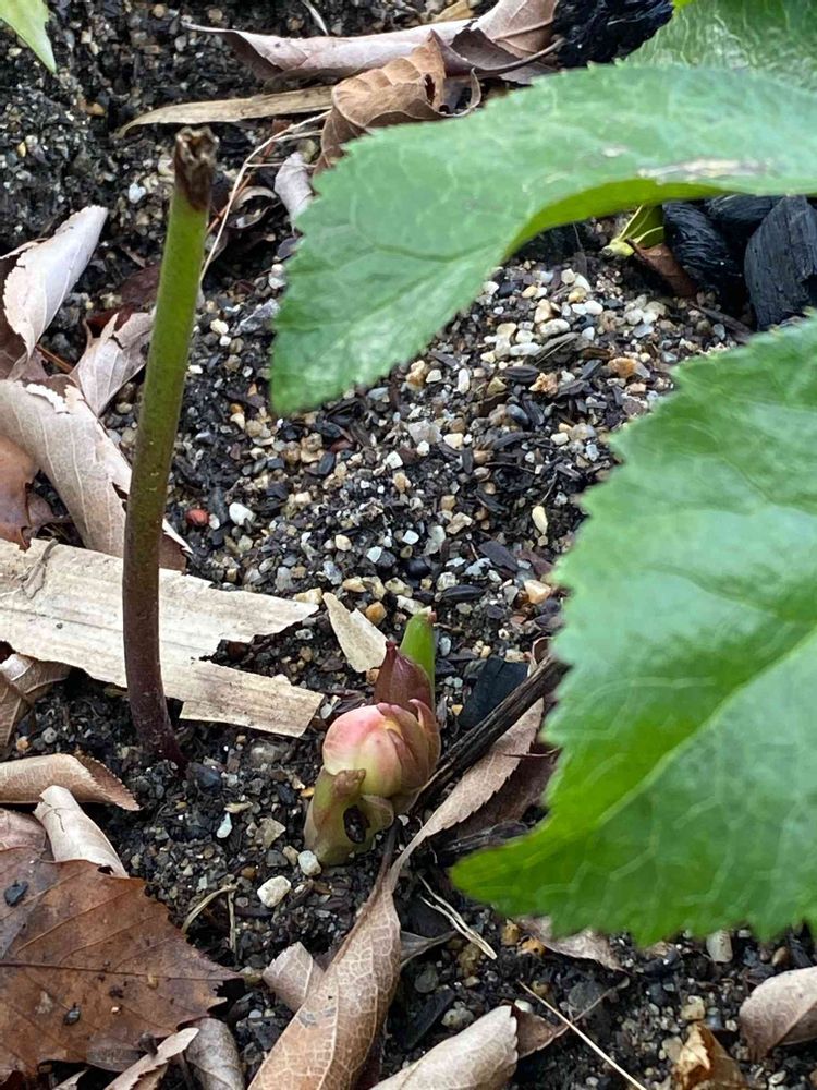 花を諦めていた、葉っぱ一枚のクリスマスローズに蕾を発見。花が楽しみです。