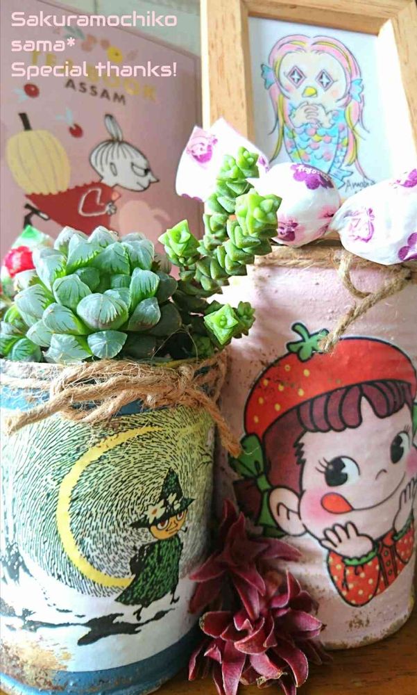 さくら餅子さんのペコちゃんリメ缶で参加します♪