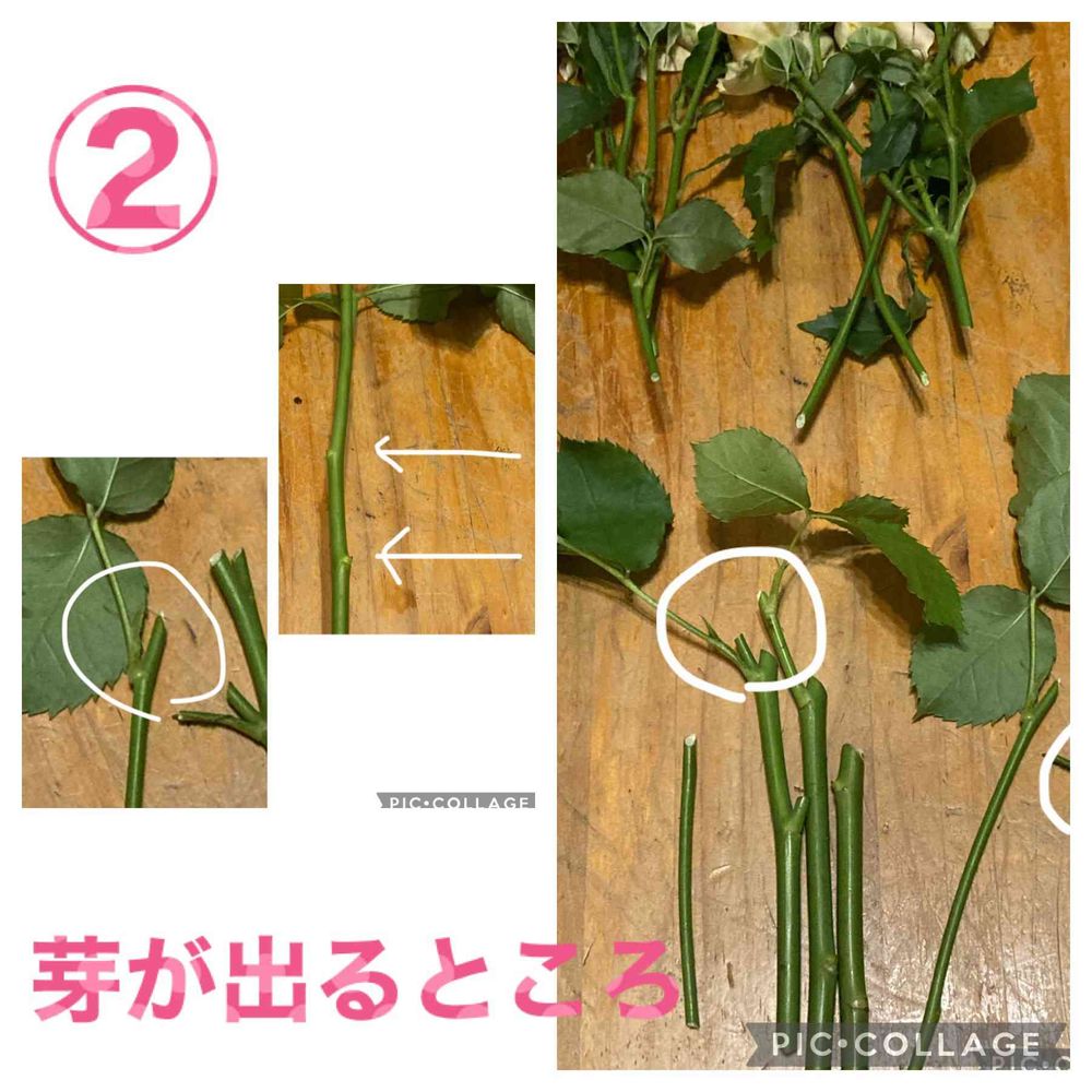 丸印の所から新芽が出てくる