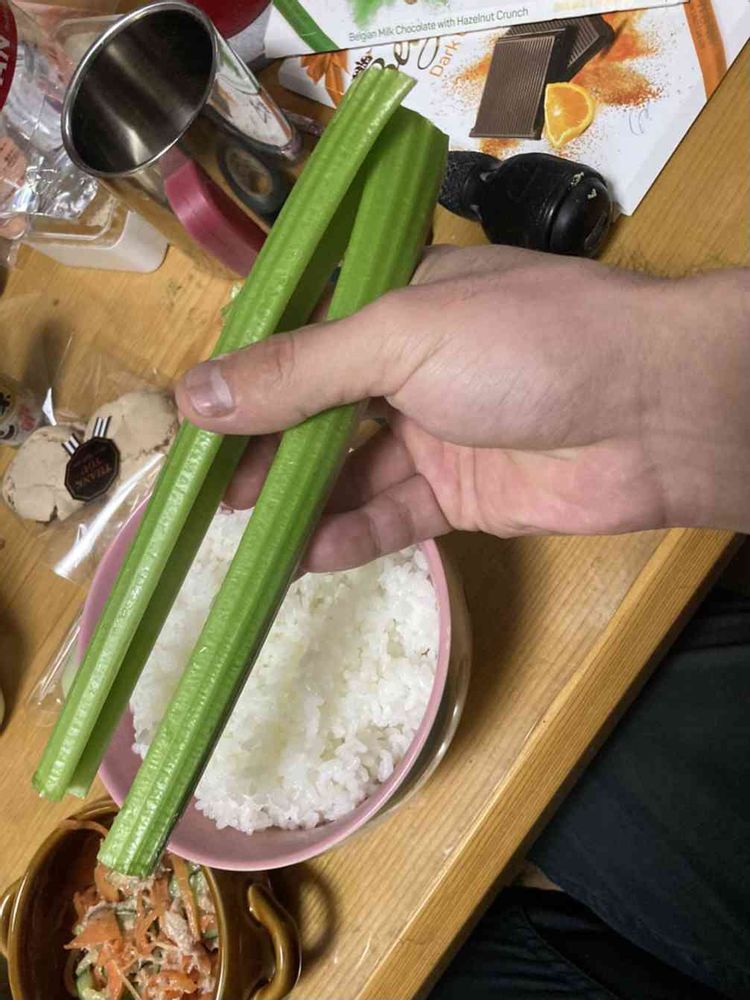 ご飯を食べ進めるうちに、セロリのお箸が短くなって行くのかしら🥢😆💦