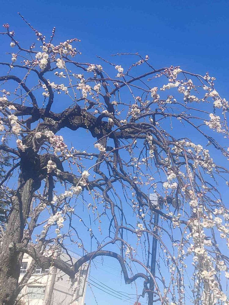 ここ数日の暖かさで、近所のお寺の枝垂れ梅が、少し咲いていました😊