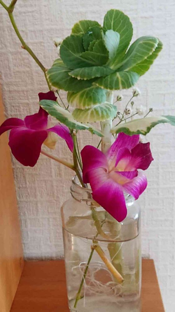 紫の縁取りが入ってるのあるね➰切り花に…そっか〰️切らないでずっと挿しておけば根っこ出るかもだね***