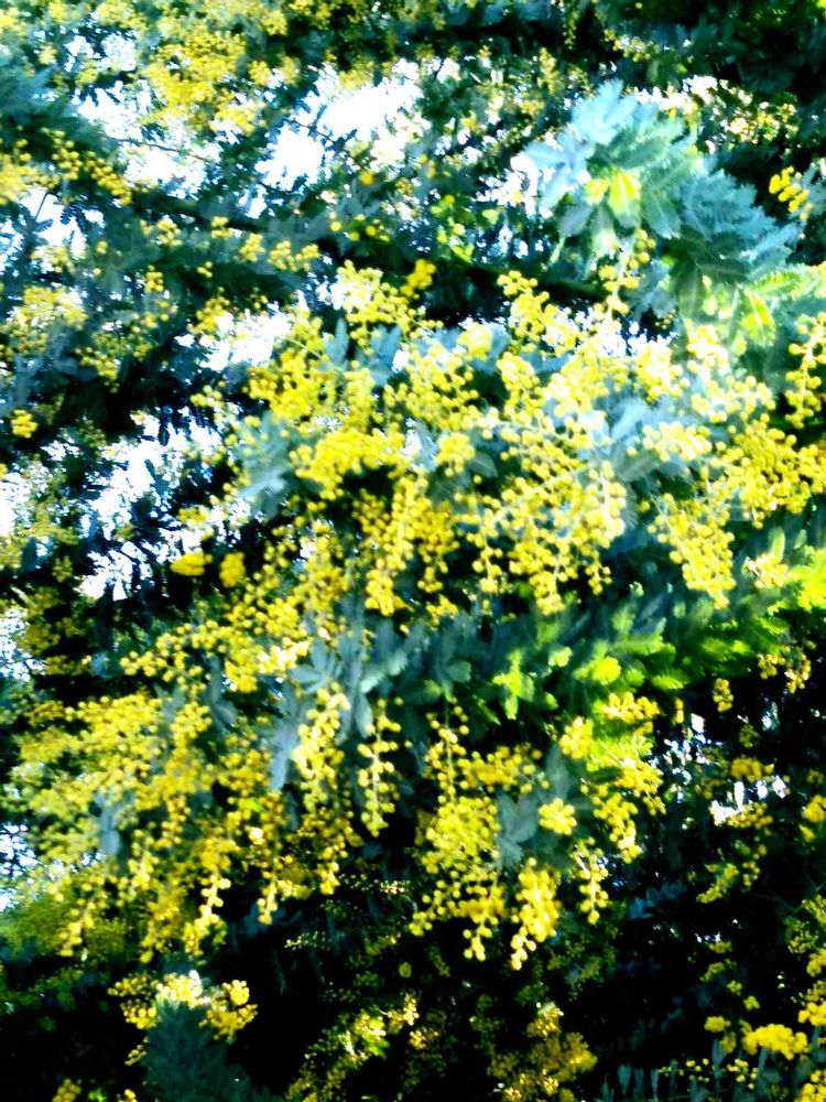 買い物途中で、通り道のお宅の塀から、ミモザが乗り出して咲いていました。