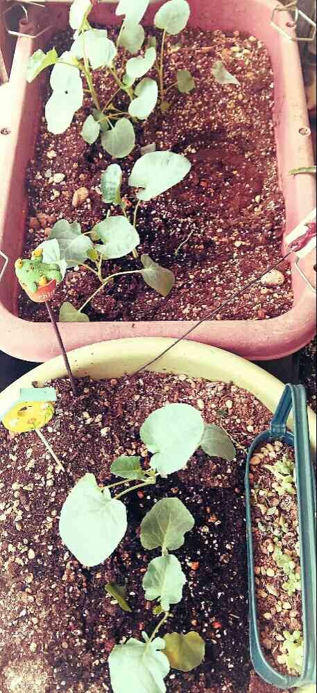 うん、チョット、欲張り過ぎかな?このプランターでは、1〜2本が、せいせいですよね。植えて1カ月なら、もっと大きくなってるよね。