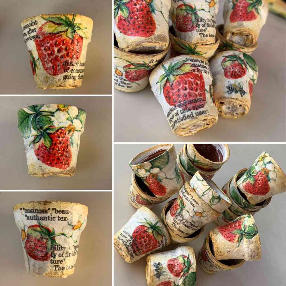 今回は苺柄のペーパーナプキンを使い作りました(^^)