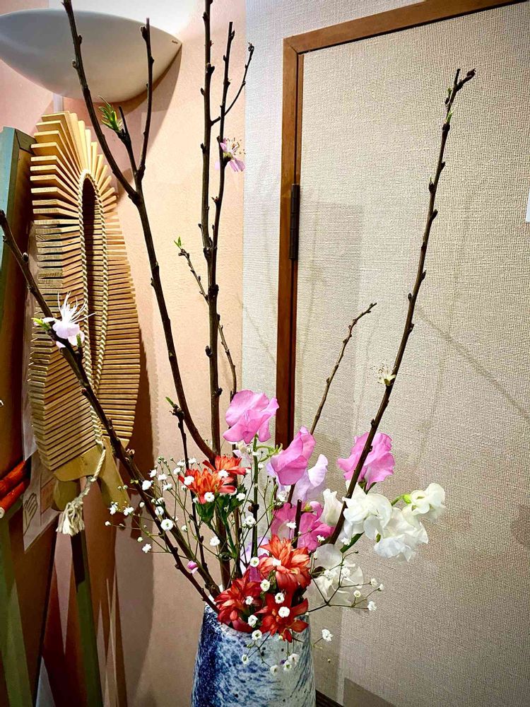 桃は枝が真っ直ぐで生けにくかったと思います。頑張られましたね。❤️