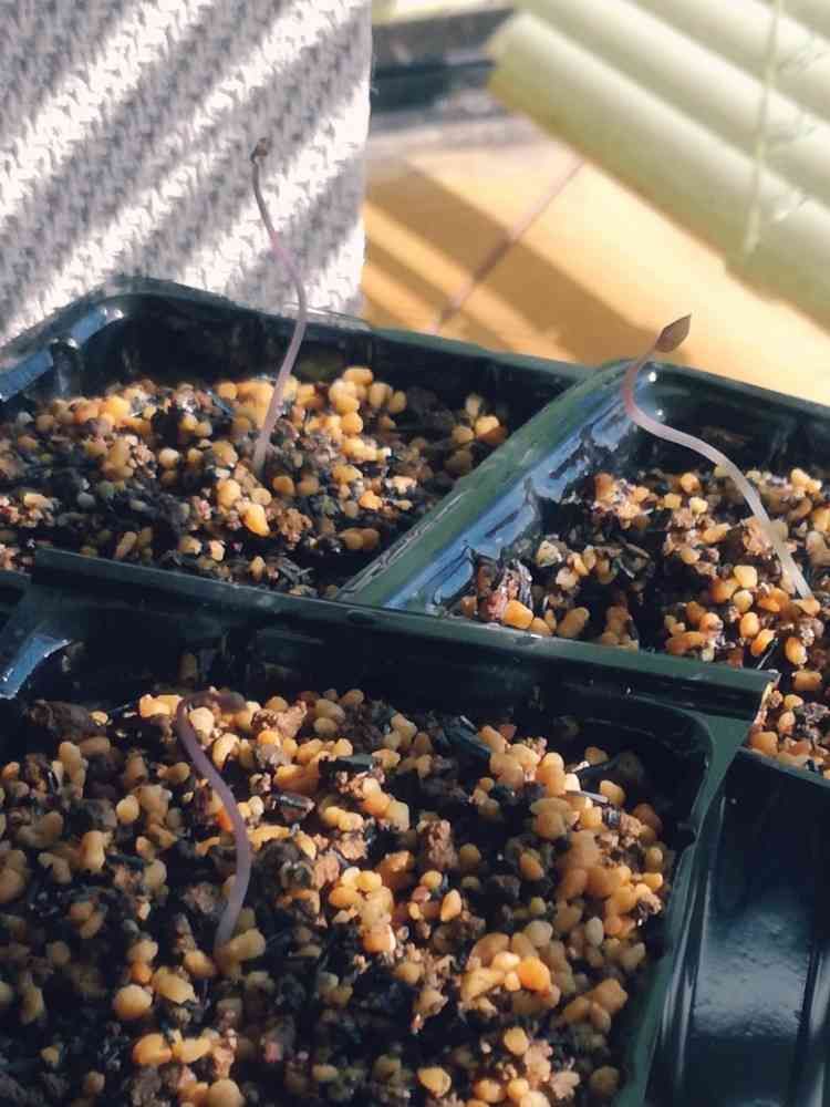 とりあえず、発芽と同時に植え替えてしまったので、今朝、萎れてないか心配でした。