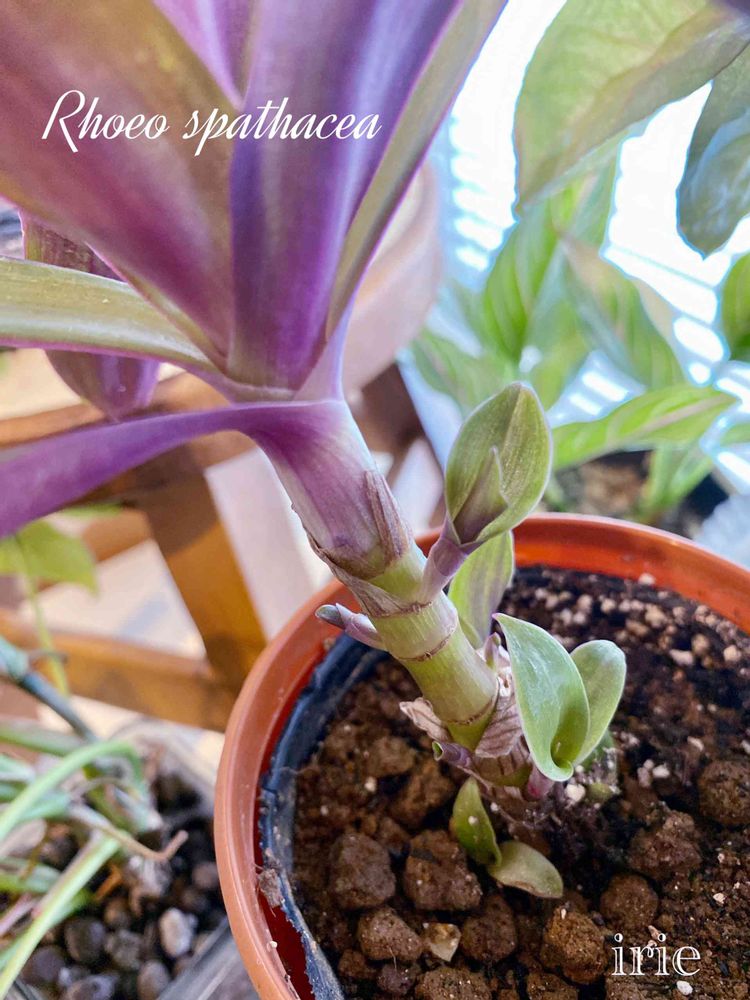 ムラサキオモト葉っぱなくなってヤベーと思ってたら春を感じでベビちゃん🌱🌱🌱でてきた😊🎶小さいけどちゃんと紫だ💜
