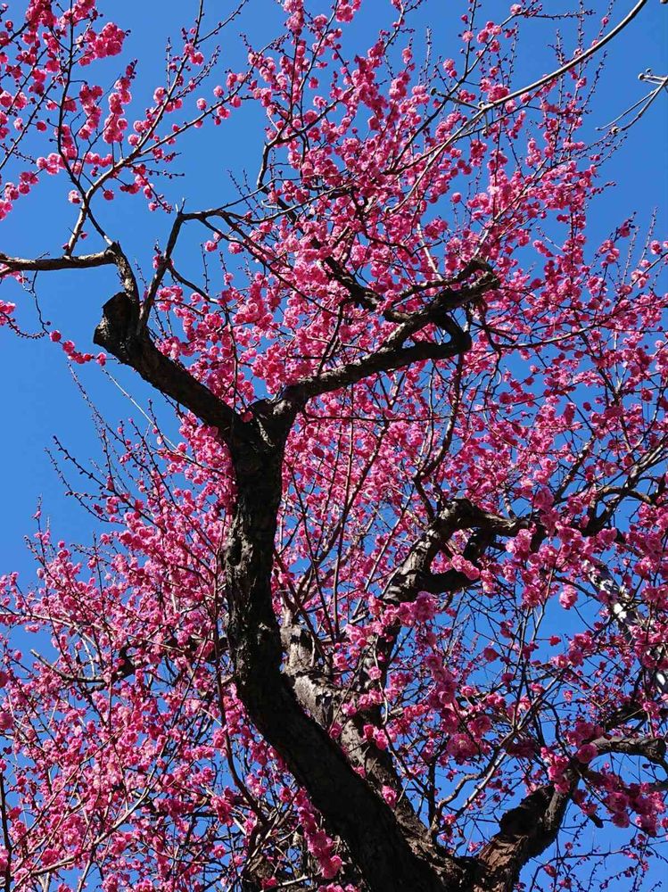 お散歩道のピンクの梅、見事です✨
