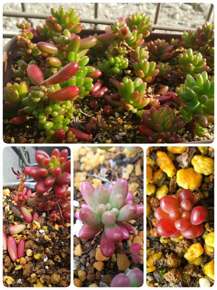 私も最近、なんでかな❓って思ってたんですけど、親株の虹の玉の葉っぱは赤いのに、茎からでてる子株?はみどりんです‼️やっぱりオーロラやレッドベリーは夏越しが大変なのですね💦私は秋にお迎えしたのでまだ未経験です😑