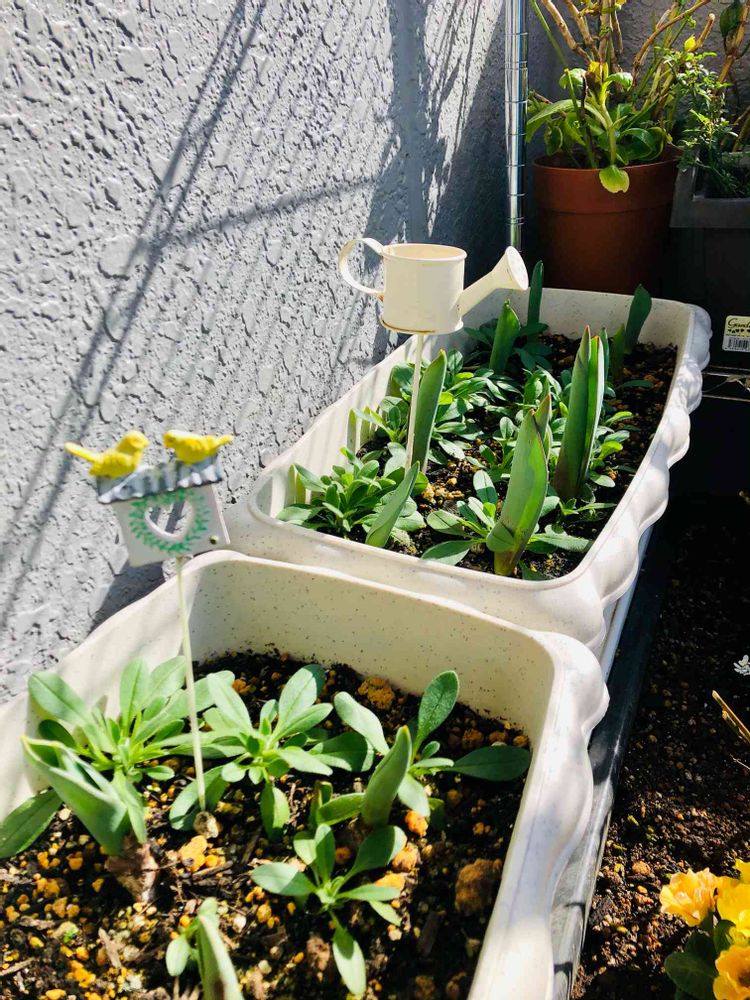 バルコニー/ベランダ,忘れな草,チューリップ ホワイトトライアンフェターの投稿画像