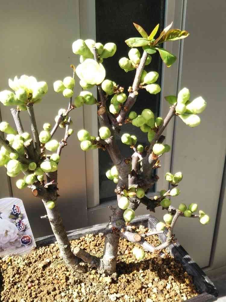 お出迎えのボケの花