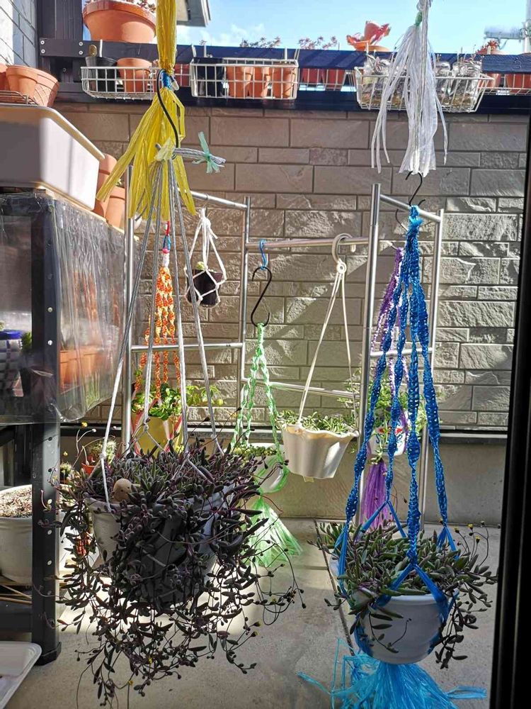 ハンギングのルビネさんたちが揺れてる〰️🎐🎐ヽ(;゚;Д;゚;; )ギャァァァ