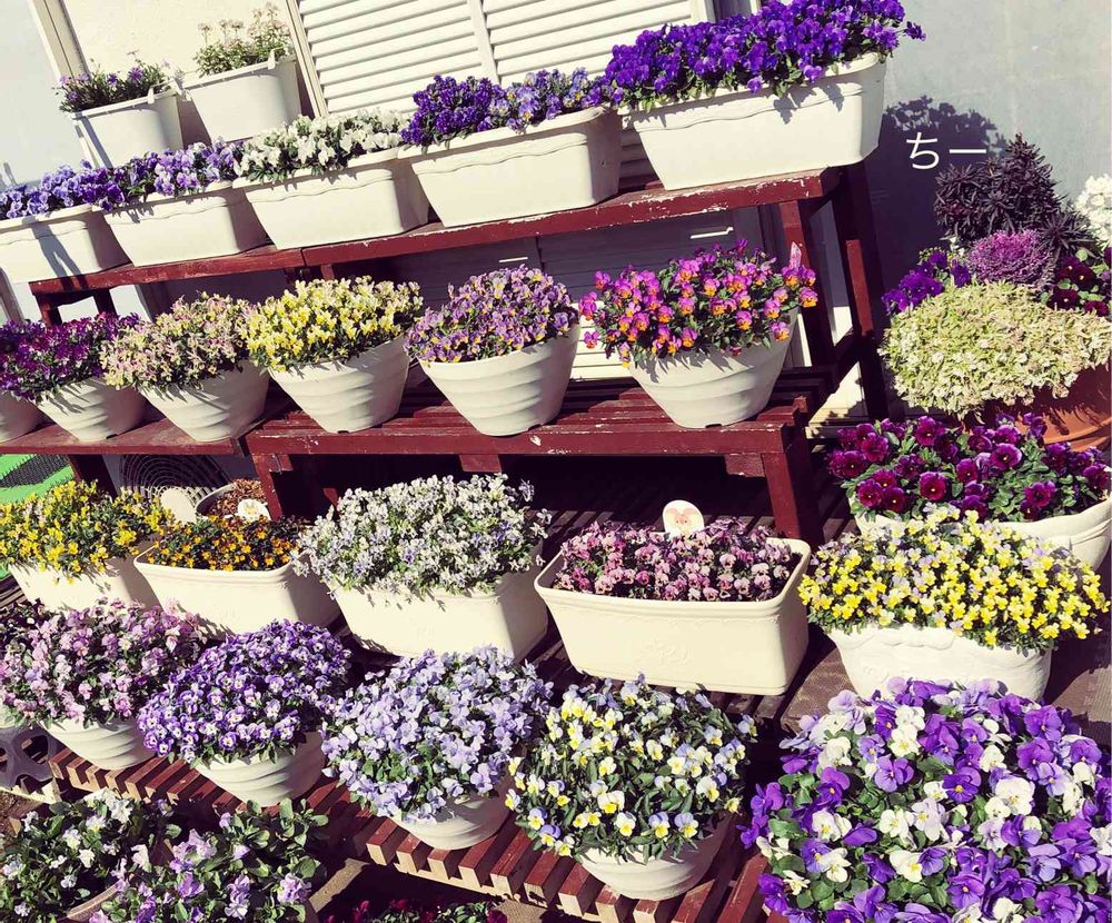 遅くなりましたが、素晴らしい眺めですね〜どの鉢のビオラさんも皆んなモリモリで、、まるでお花屋さんですね✨✨✨💕 いえ、お花屋さんよりもたくさんあってお手入れもすごく綺麗にしてあって綺麗ですね👏👏👏💖