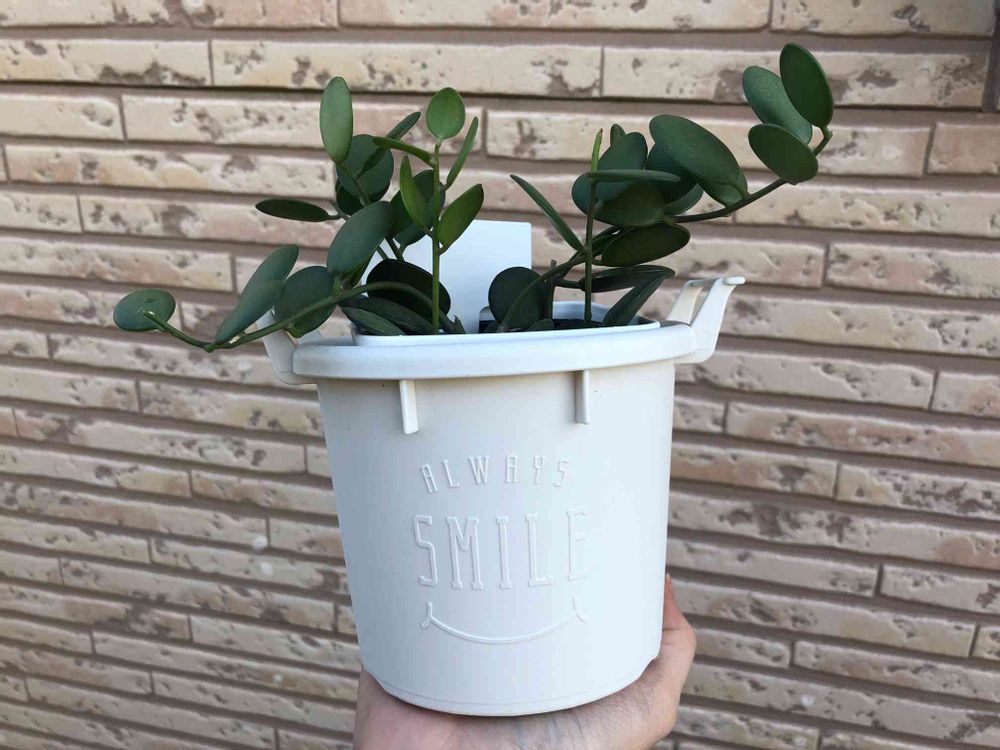 (好きな花屋さんで前々から見かけていて、欲しくて行くたびに買おうか迷っていたけどすこーし高くて買ってなかったら今日行ったホームセンターで300円で売ってたので300円なら!と買ってしまった〜、まん丸の葉がやっぱりとても可愛い!!)