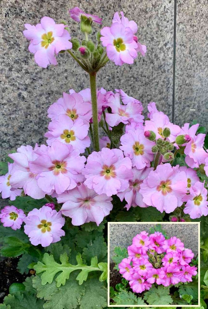そこに、優しげで、ある種のおおらかさを持った、淡い紫ピンクと、濃いピンク紫のサクラソウが、いやに整った花姿で、行き交う人たちをジッと見つめていた。私には、これまで見慣れなかったサクラソウだった。