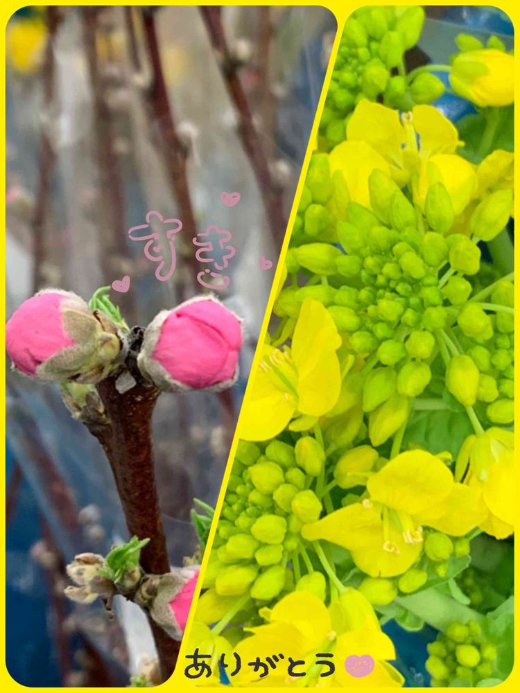 おはようございます(^_^)はじめましてです☺️桃🍑の花🌼菜の花