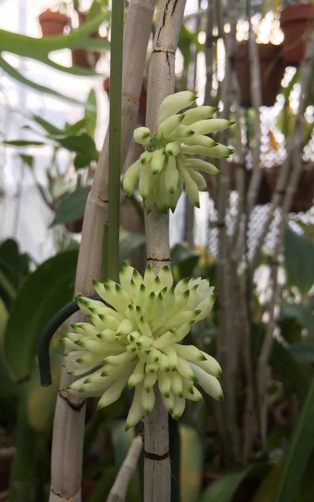 草丈が1m以上あります。3年くらい前のバルブにも花がつくので、枯れるまで切ることはできません。