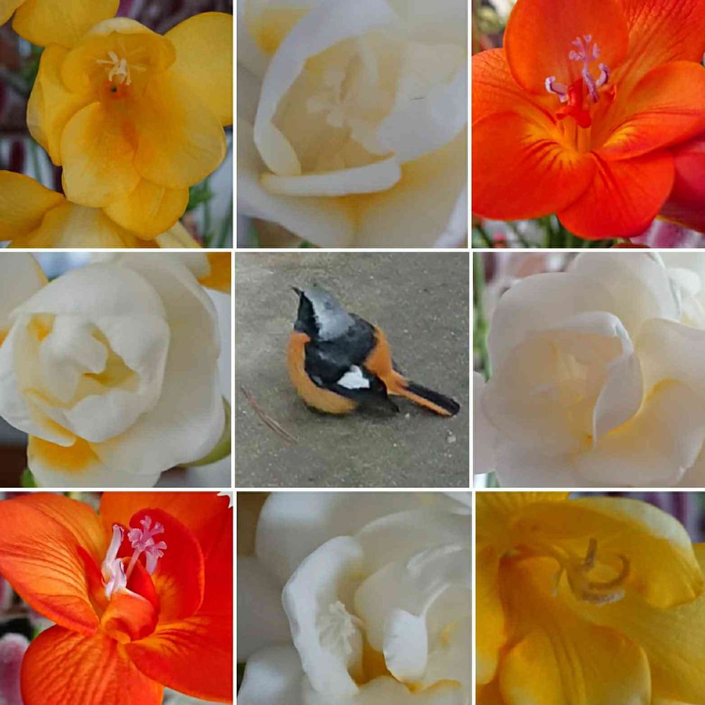 窓辺,フリージア,ジョウビタキ♂の投稿画像