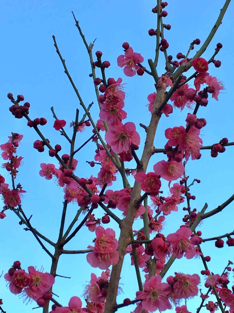 紅梅のお花が青空に映えて綺麗ですね🌺
