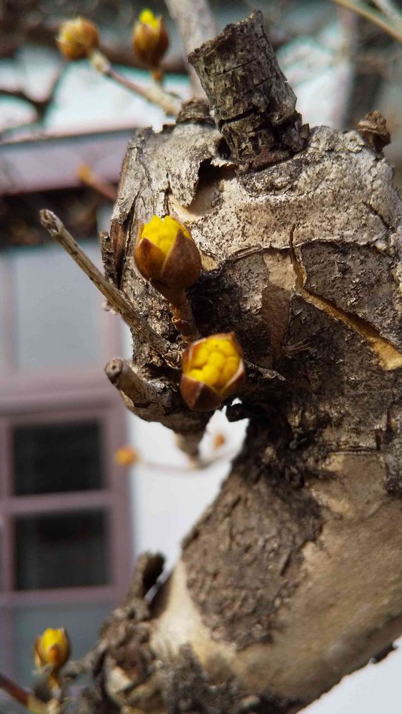 「サンシュユ」の蕾も 膨らんでいます😄🎵