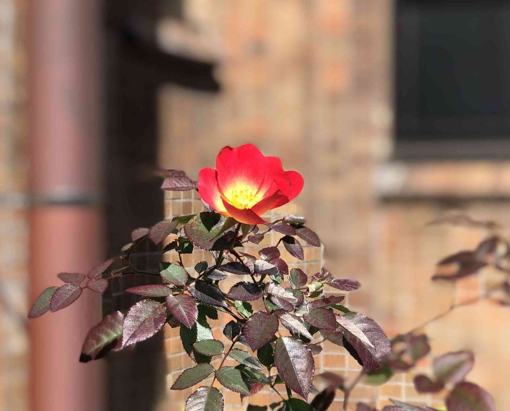 仕事先の庭には毎年この季節になるとたった1輪だけ赤いつるバラが咲きます。このつるバラが咲くともうすぐ春が来るんだなと少しばかり感傷的になります。