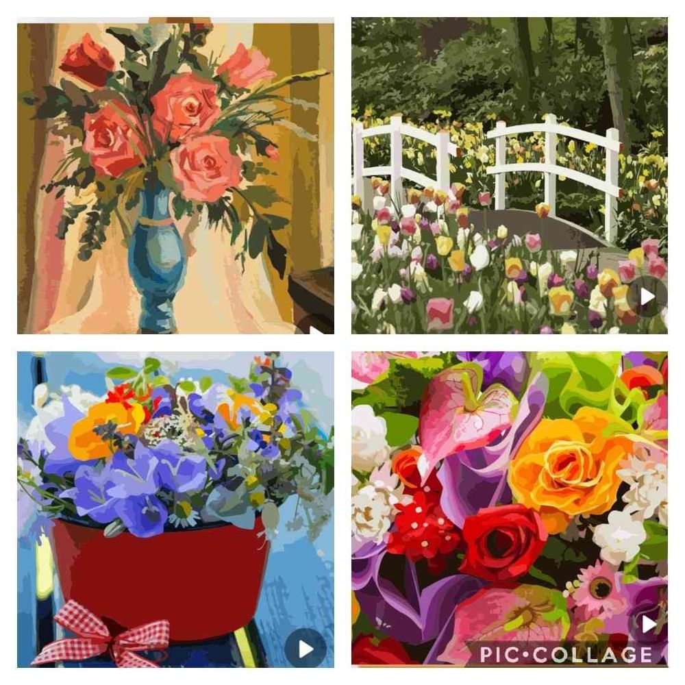 花四枚💖塗り絵です。ワクワクする花達ですね🥰🥳