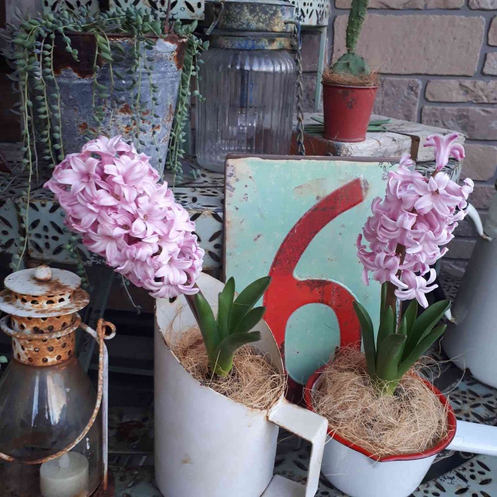 今週家の近くのお店で、やっと今シーズン初めて薄ピンクのヒヤシンスを見つけました❣️3鉢目になってしまうけど、お迎えしちゃいました🤣