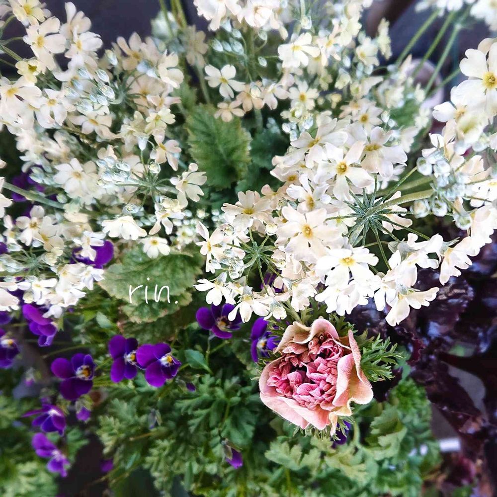 りんさんの小さな庭,ビオラ・つぶらなタヌキ,プリムラ マラコイデス ライムグリーンフサコの投稿画像