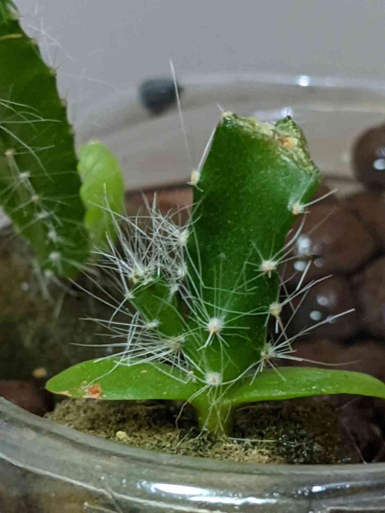 黄色く枯れていたドラゴンフルーツを摘心したら、一週間でこんな脇芽が伸びていた