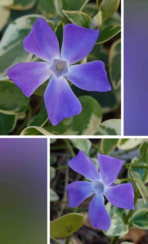 斑入り葉青紫色のツルニチニチソウの花が咲き始めて綺麗です💕