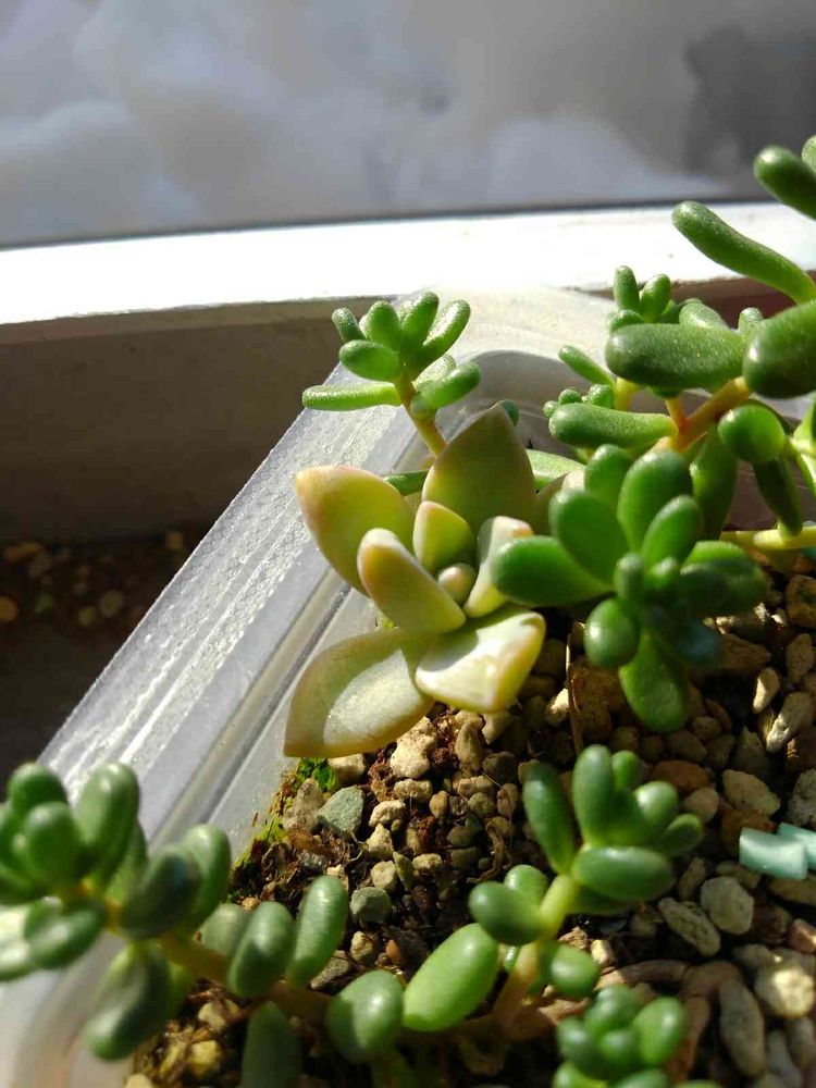 写真で見た感じなのでセダム属のタイトゴメにみえるような気がします「緑ん」黄色っぽいのはセダム属のオウレイぽいような❔❔