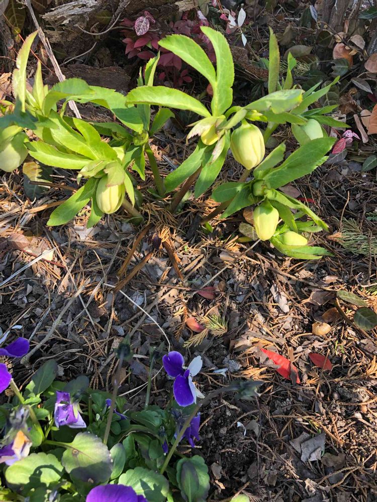 ついにうちの庭にもクリスマスローズの蕾が。今年は冬らしい冬でしたのでちょっと遅めです。